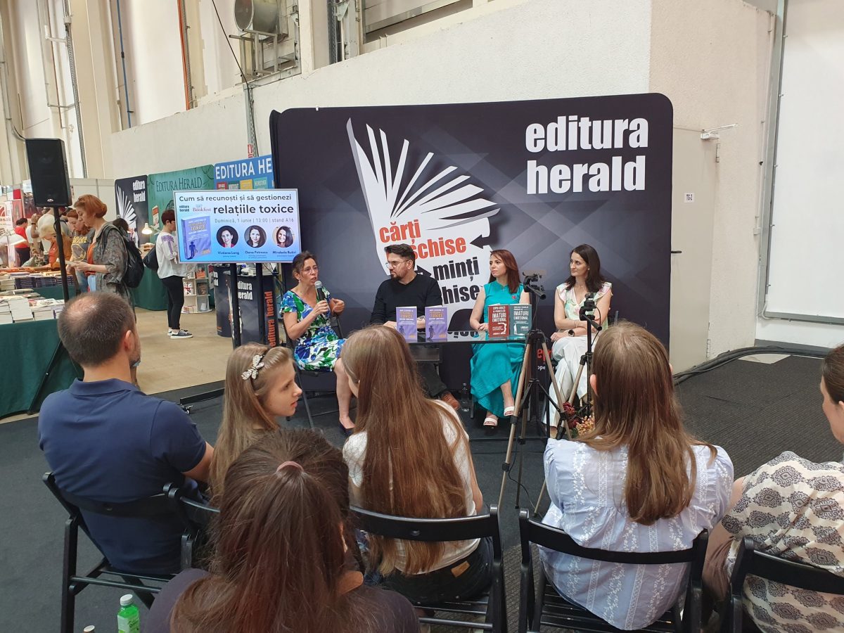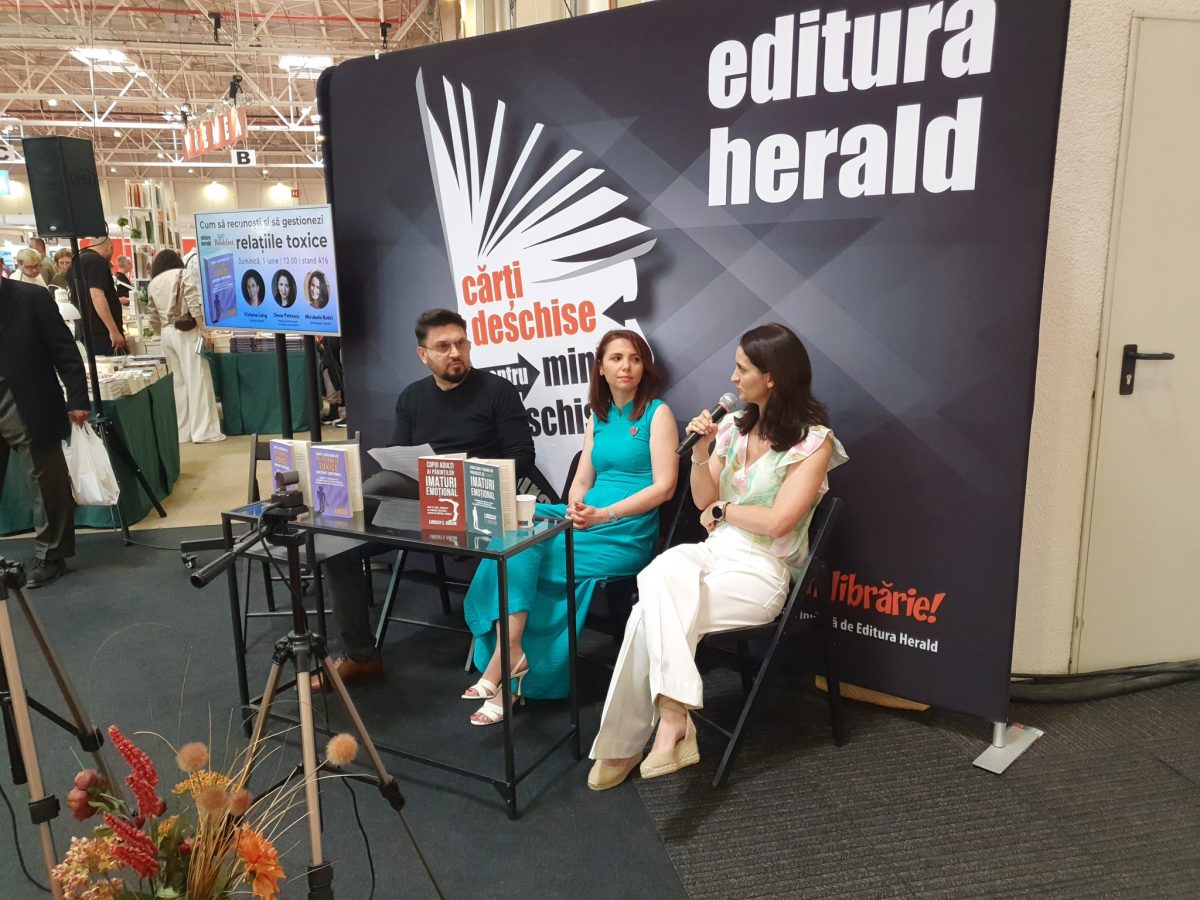 Duminică, 1 iunie, ora 13, împreună cu Sorin Lucaci, PR Editura Herald și colegele mele, Vistiana Long și Mirabela Butiri, am vorbit pe marginea cărții ”Rupe legătura cu persoanele toxice, imature emoțional. Regăsește-ți propria identitate și schimbă tiparele relaționale formate în copilărie alături de părinți imaturi emoțional”, Lindsay C. Gibson, apărută la Editura Herald, în cadrul Târgului de carte Bookfest București.